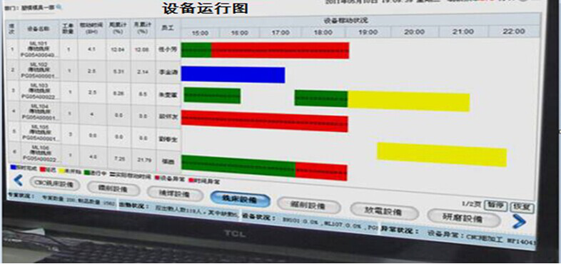 咪雀機(jī)床設(shè)備管理系統(tǒng)與生產(chǎn)設(shè)備連接,自動(dòng)采集生產(chǎn)進(jìn)度、設(shè)備狀態(tài)、工藝參數(shù)等并進(jìn)行遠(yuǎn)程監(jiān)控或者看板展示,管理人員在辦公室就很直觀的知道每臺(tái)設(shè)備的運(yùn)行情況、設(shè)備是否在正常加工,并通過(guò)數(shù)據(jù)對(duì)設(shè)備進(jìn)行設(shè)備綜合效率(OEE)分析,提高設(shè)備利用率,降低設(shè)備生產(chǎn)運(yùn)維成本。